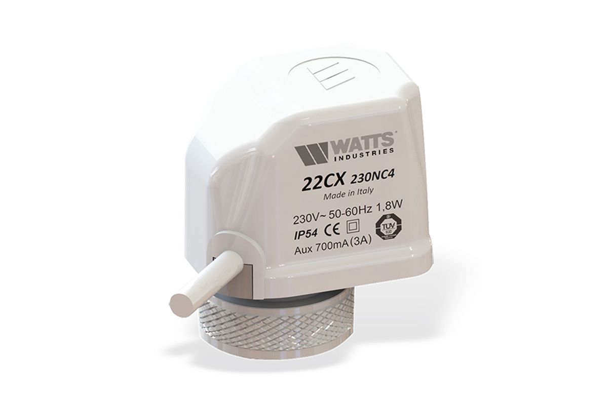 Сервоприводы 22СХ применяются в системах отопления, охлаждения и кондиционирования. Номинальное электропитанию 230В, нормально закрытый. Электротермический сервопривод применяется с регуляторами с двухточечным управлением. Наиболее обширной областью применения является управление температурными зонами в системах напольного отопления совместно с комнатными термостатами WATTS серий Belux, ВТ, WFHT и Milux.