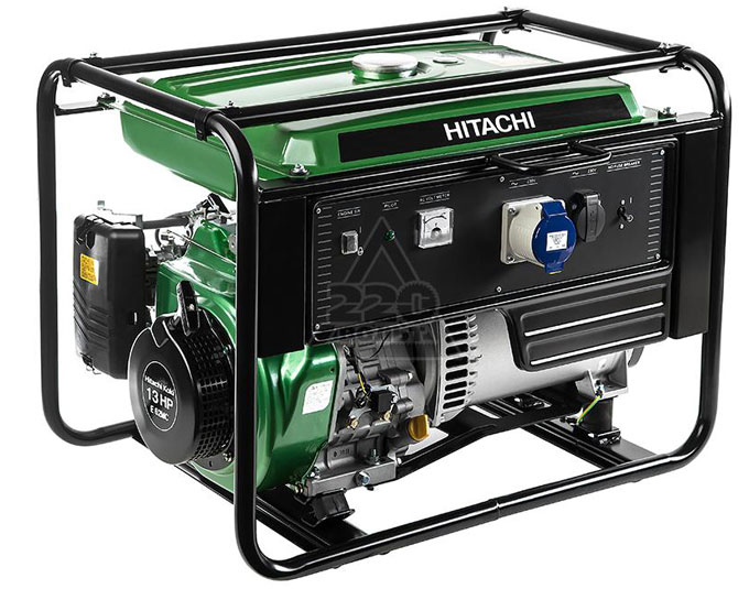 HITACHI E62MC – бензиновый генератор для стройки, дорожных работ или резервного питания дачи. Подходит для электропитания освещения, подключения инструментов и бытовой техники: плиток, чайников, холодильников и т.д. Штробить стены в помещении без электричества, запустить бетономешалку, осветить весь дом – этот генератор справится со всем.