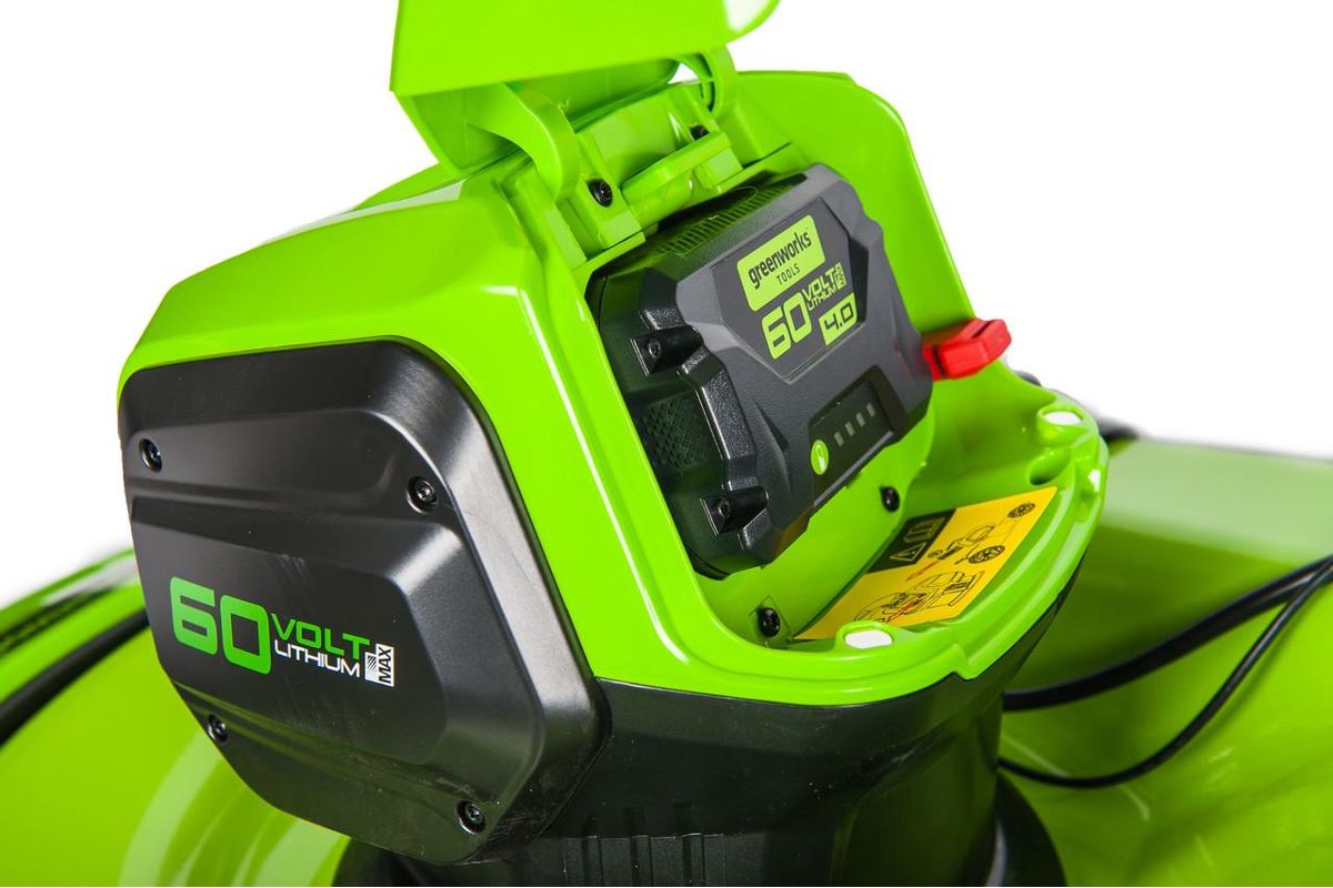 Аккумуляторная батарея 60V, используемая данной газонокосилкой, совместима с целым спектром устройств линейки Гринворкс 60 вольт.