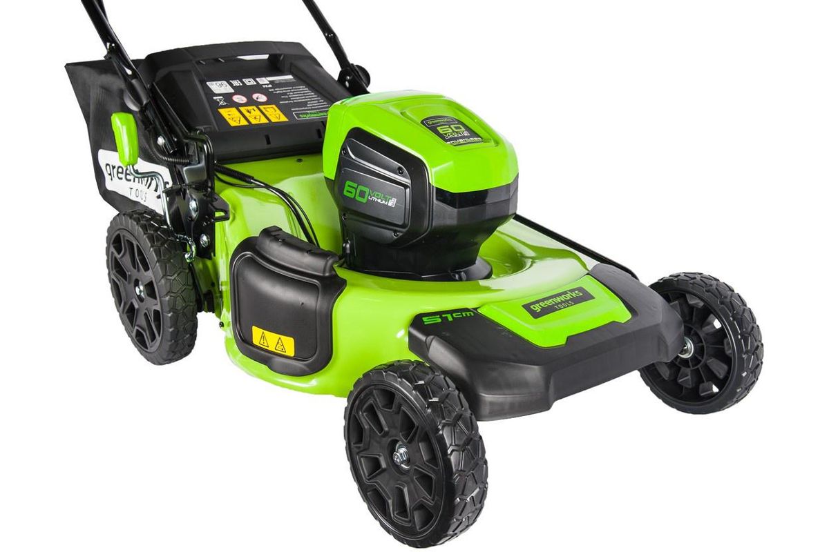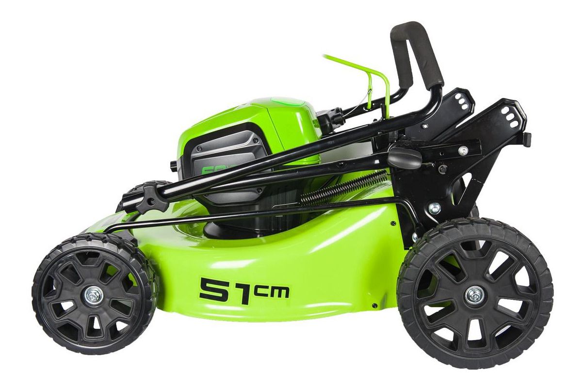 Газонокосилка аккумуляторная GREENWORKS из линейки устройств 60 вольт (модель GD60LM51HPK4) - относится к садовому инструменту профессионального уровня. Отлично подойдет за уходом газона большой площади и является прямым конкурентом бензиновых садовых косилок благодаря современному индукционному двигателю DigiPro.