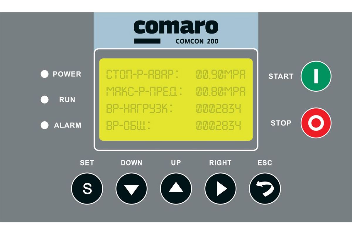 - Электронным русифицированным блоком управления с LCD дисплеем для управления рабочими процессами компрессора;