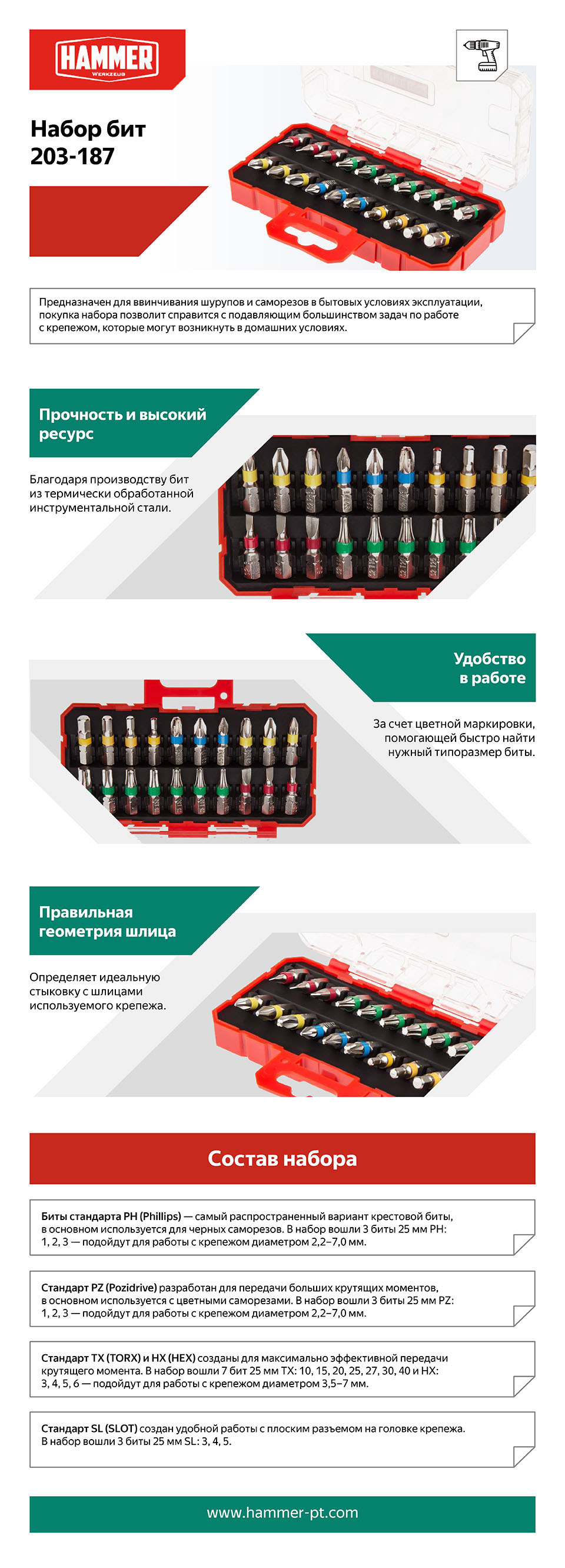 — Идеальная стыковка с шлицем крепежа благодаря сбалансированной геометрии;