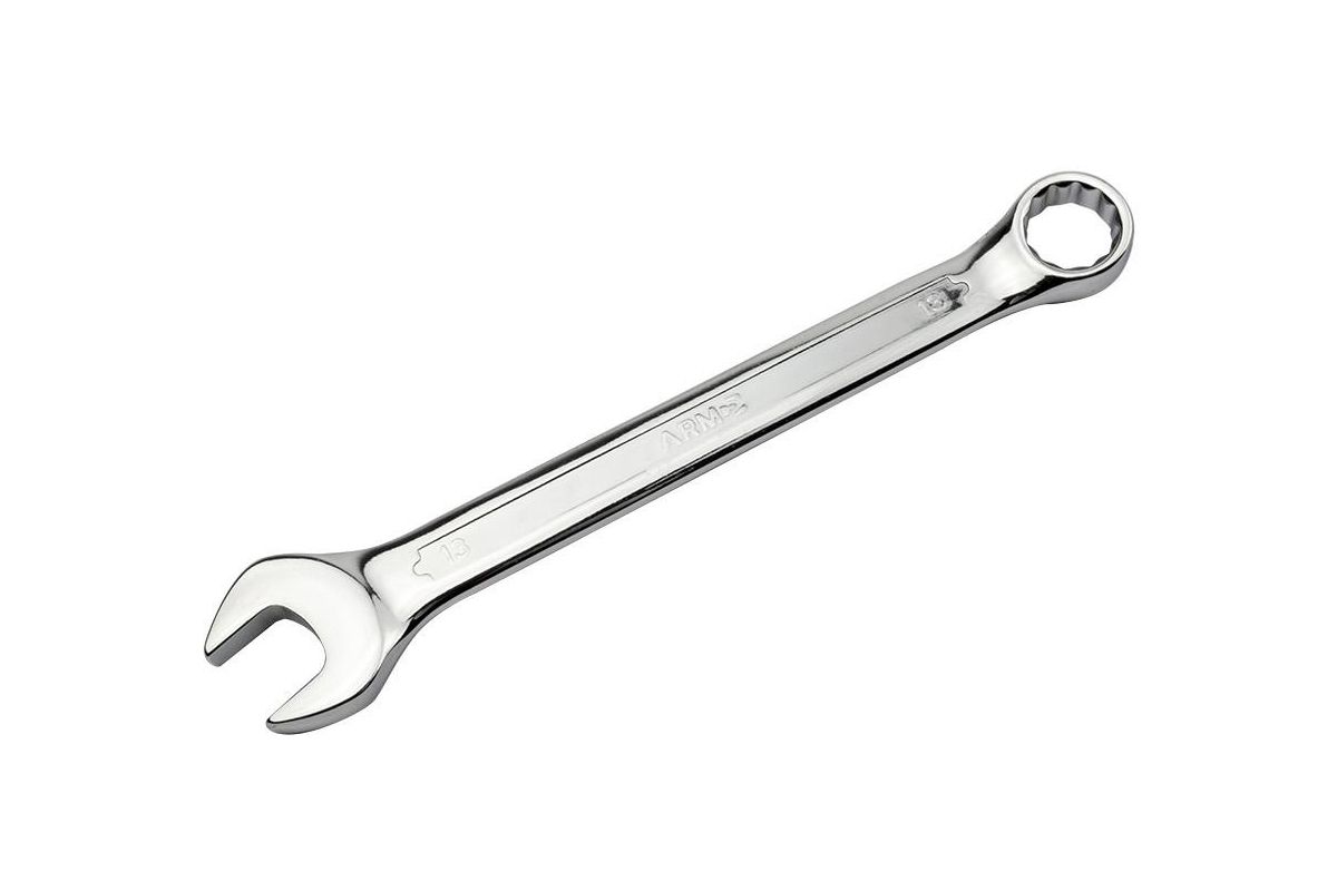 Ключ гаечный комбинированный ARM КГК 13Х13 имеет размер зева 13Х13мм, длину ключа 160 мм.Применяется для откручивания/закручивания гаек и болтов, обслуживания и ремонта автомобилей и мотоциклов (в том числе, велосипедов), сельскохозяйственных работ и строительства, домашнего обихода. Имеет два типа откручивающей головки, для слесарно-монтажных работ, сантехнических работ.Хромоникелевое исполнение.Материал - углеродистая инструментальная сталь.