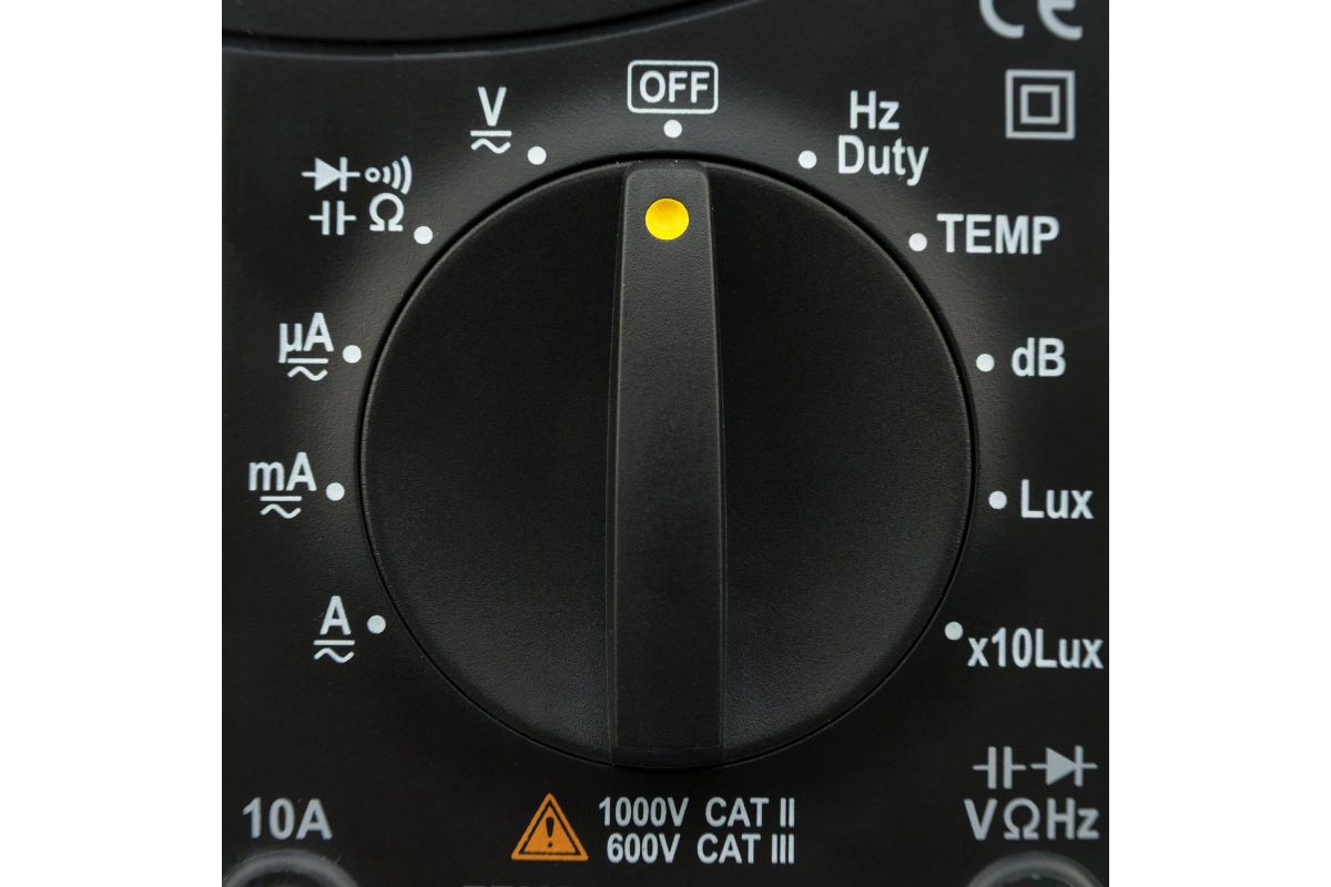 - Функции мультиметра: измерение постоянного/переменного напряжения, постоянного/переменного тока, емкости, сопротивления, частоты, температуры, влажности, уровня звукового поля и уровня освещенности;